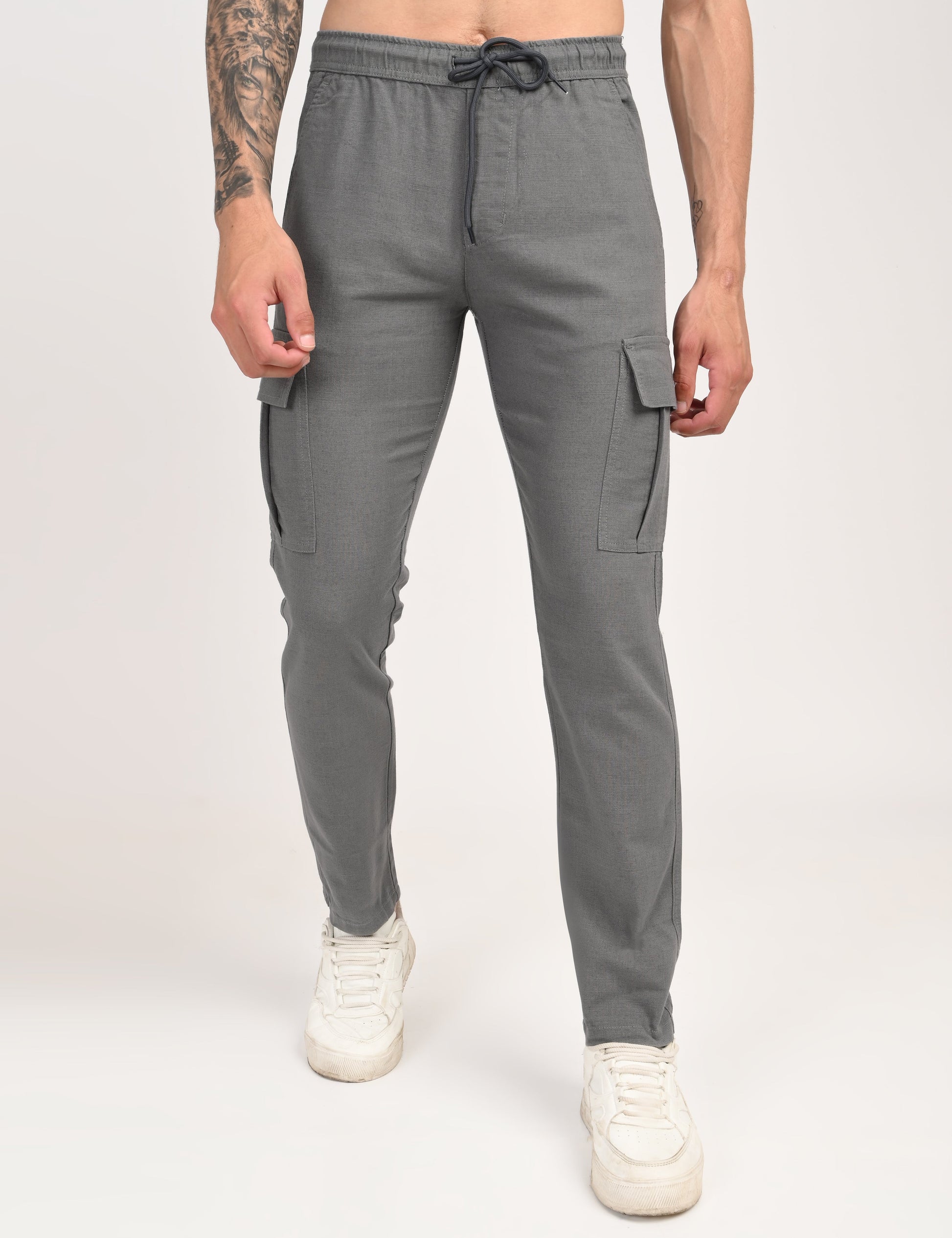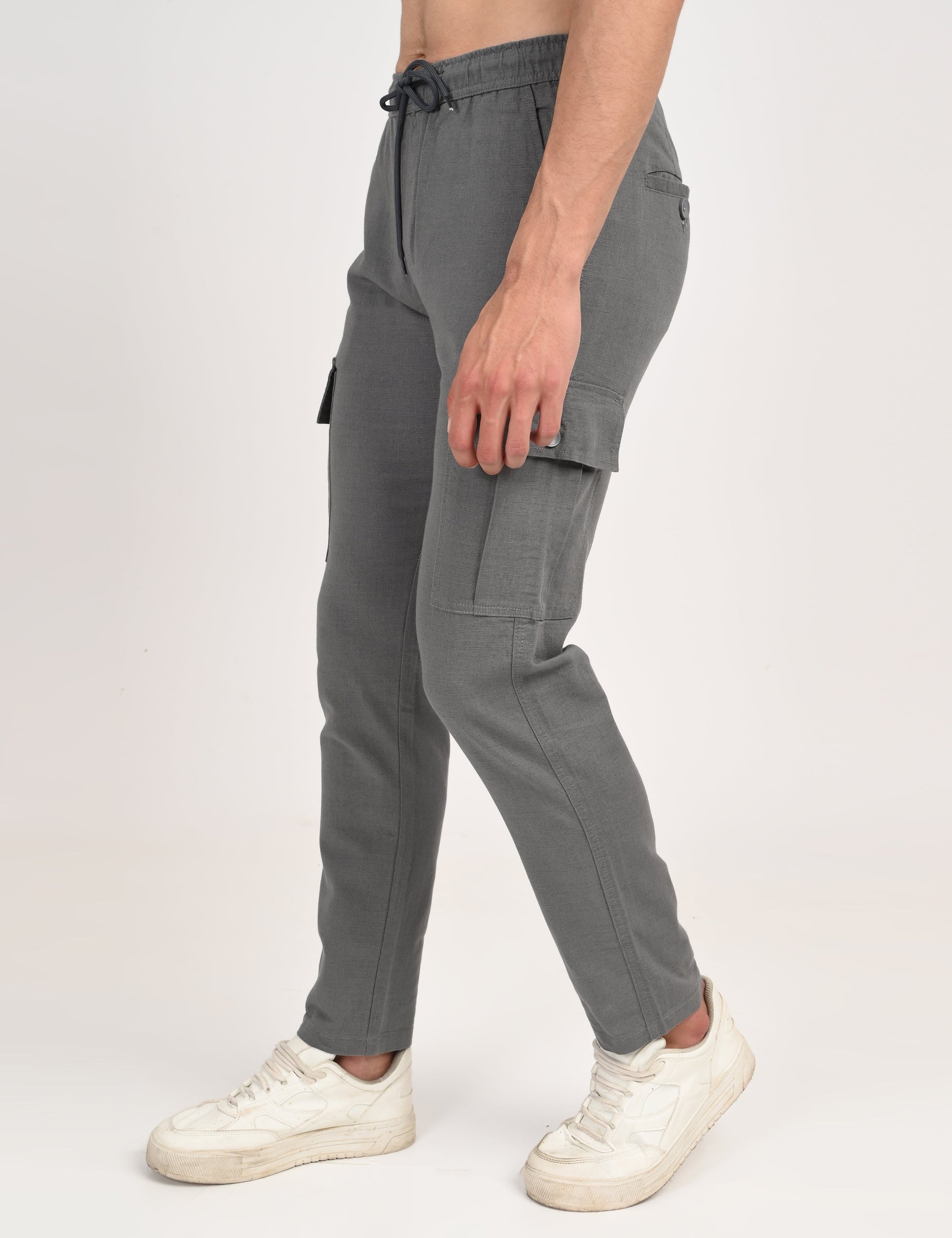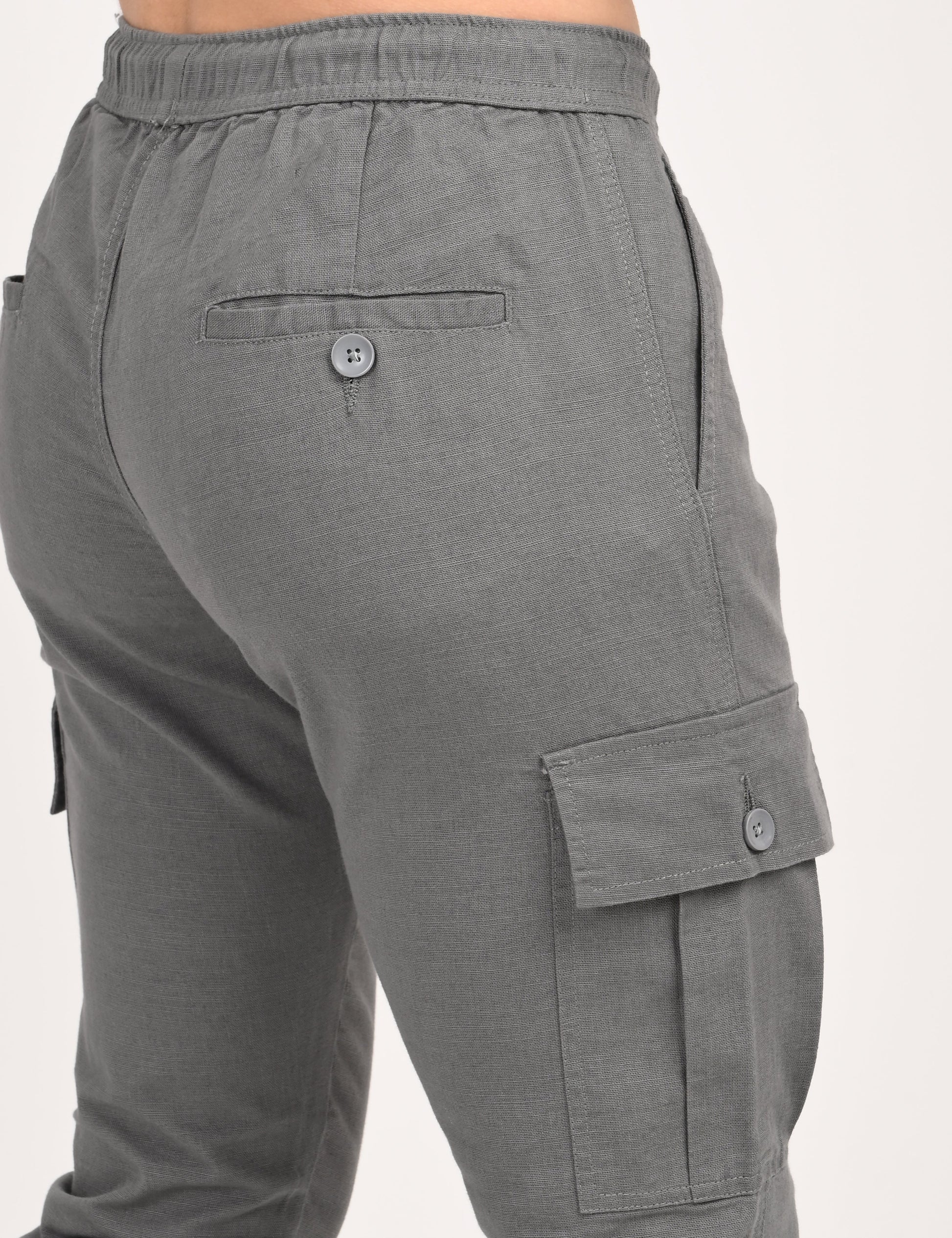 Men’s Relaxed Linen Cargo Pants with Multi Pockets