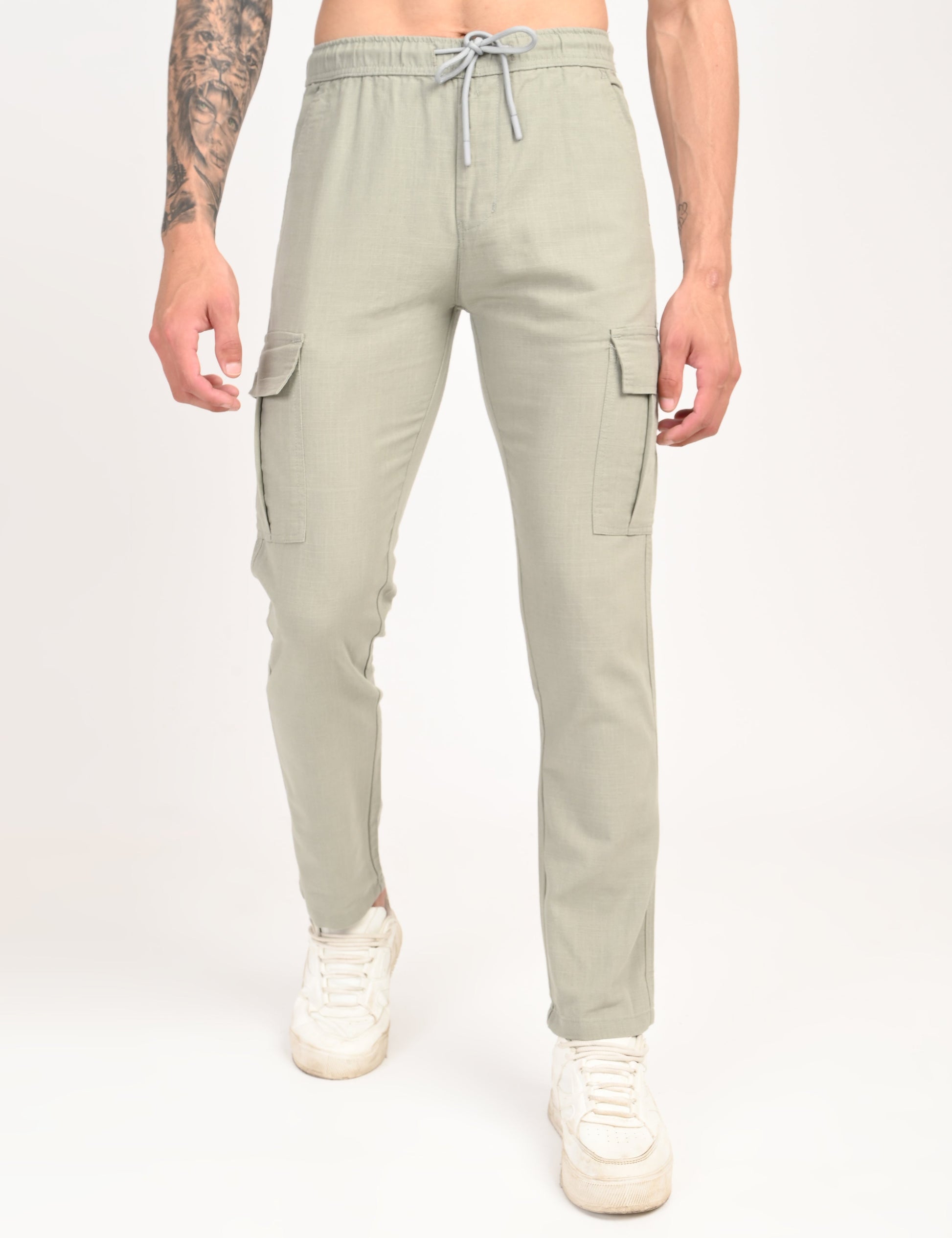 Men’s Relaxed Linen Cargo Pants with Multi Pockets