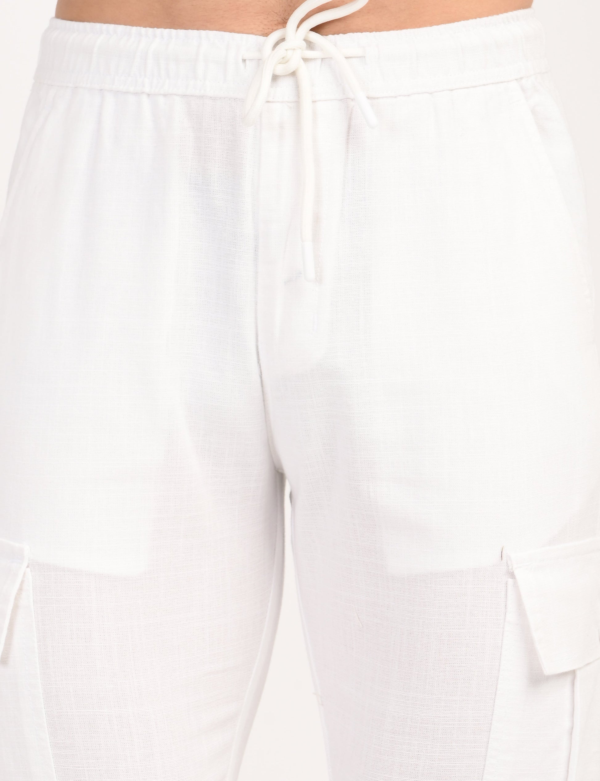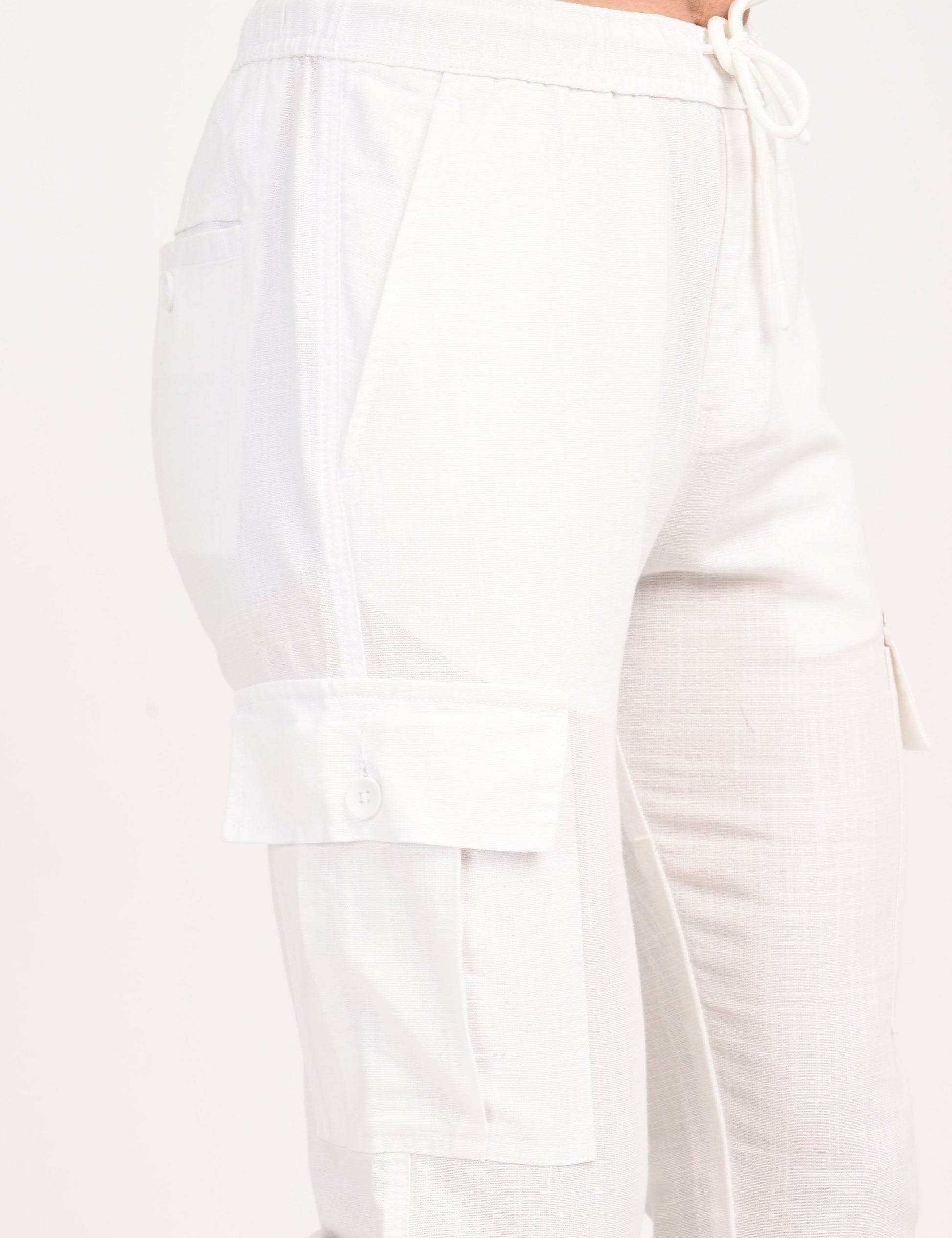 Men’s Relaxed Linen Cargo Pants with Multi Pockets