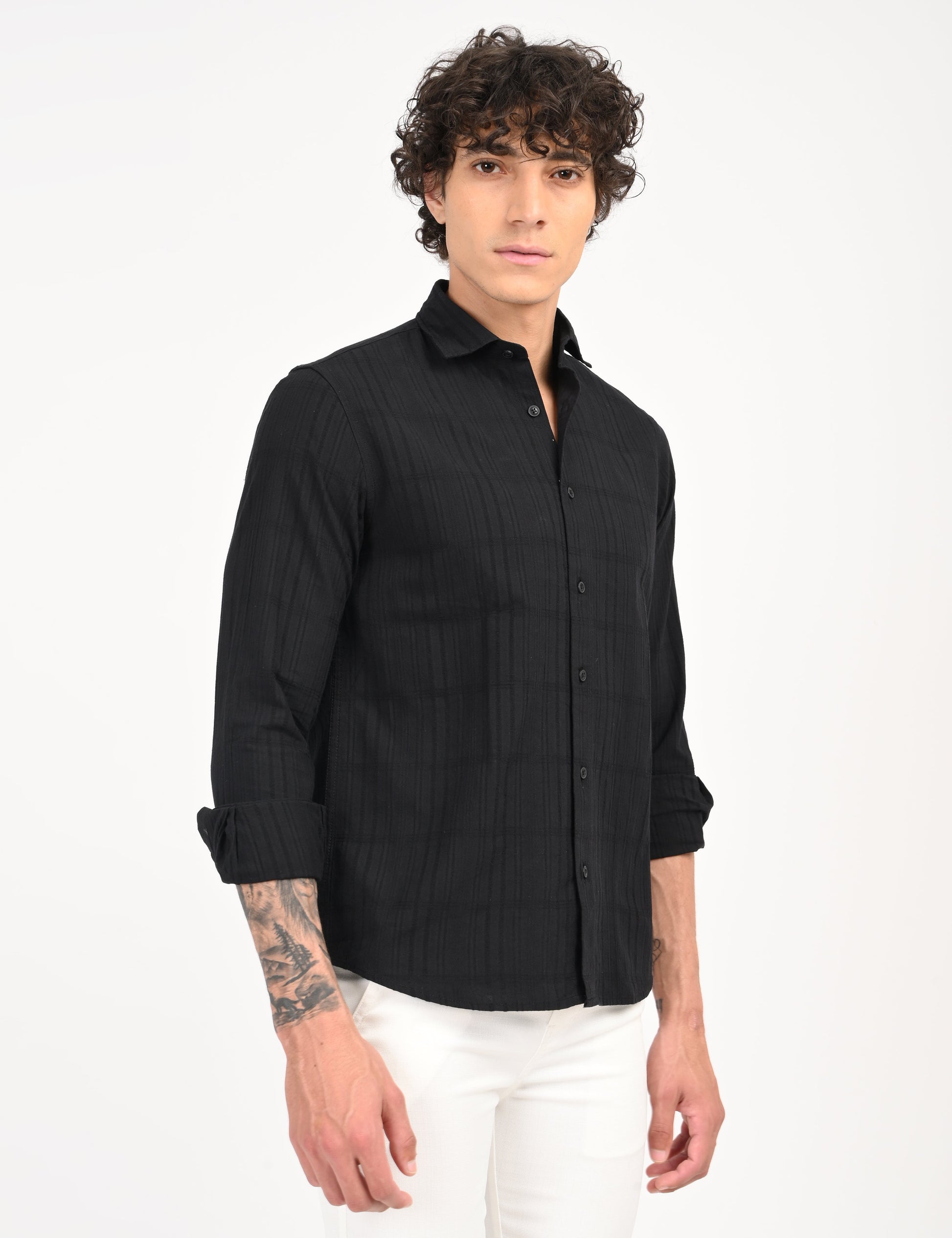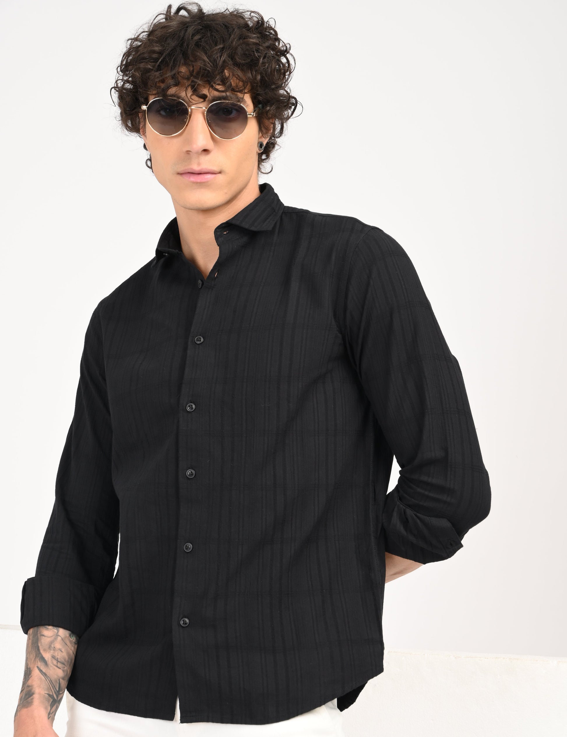 Elevate your wardrobe with this timeless solid cotton shirt, crafted from 100% pure cotton for superior comfort and breathability.