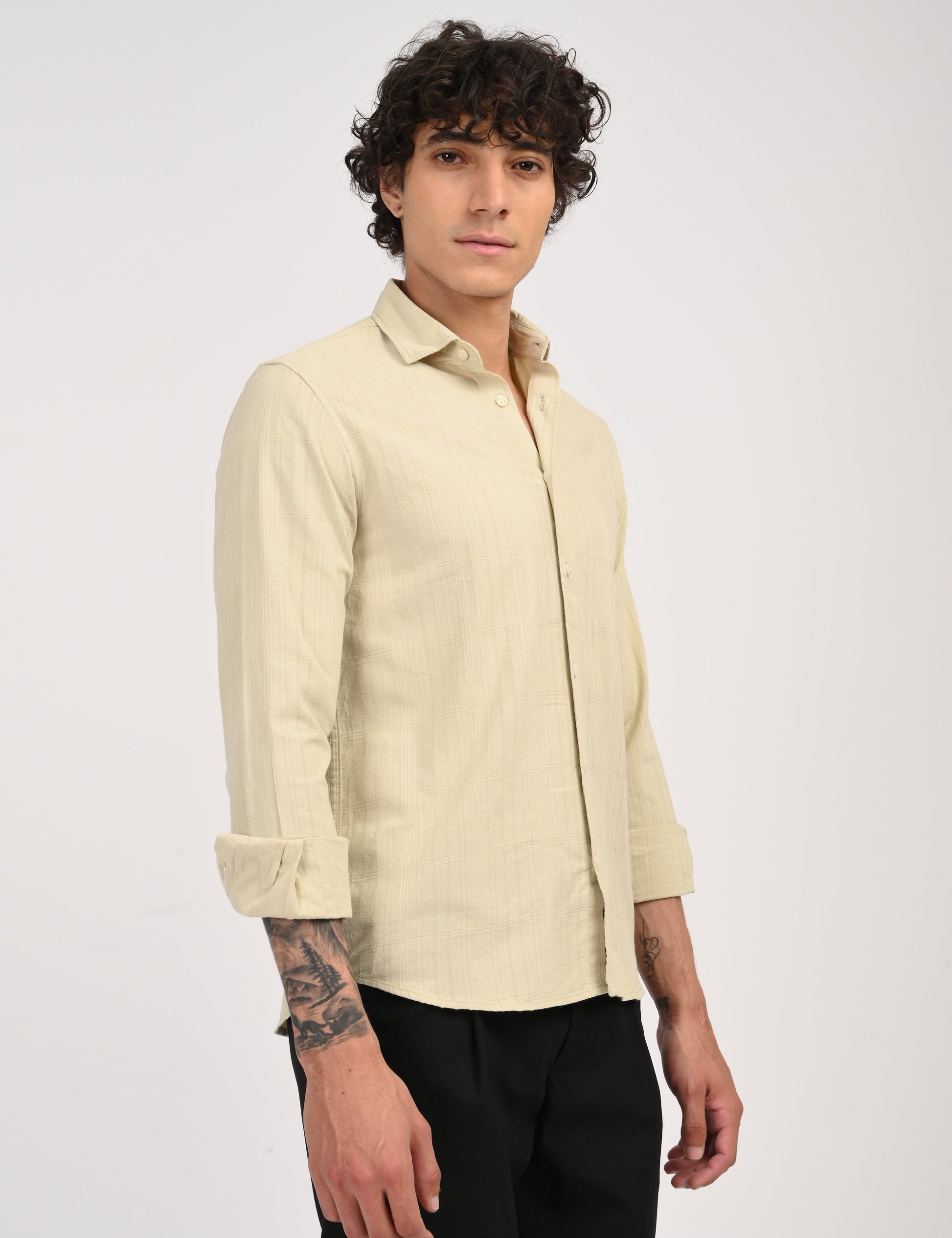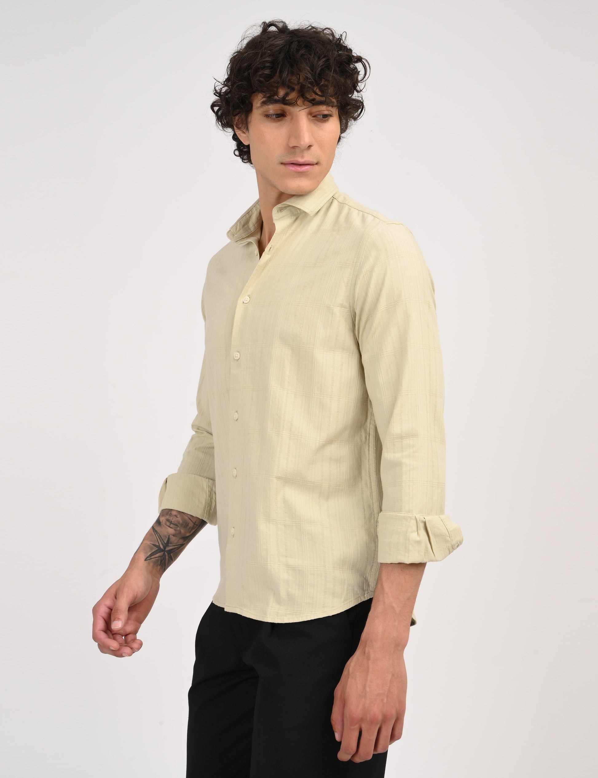 Elevate your wardrobe with this timeless solid cotton shirt, crafted from 100% pure cotton for superior comfort and breathability.